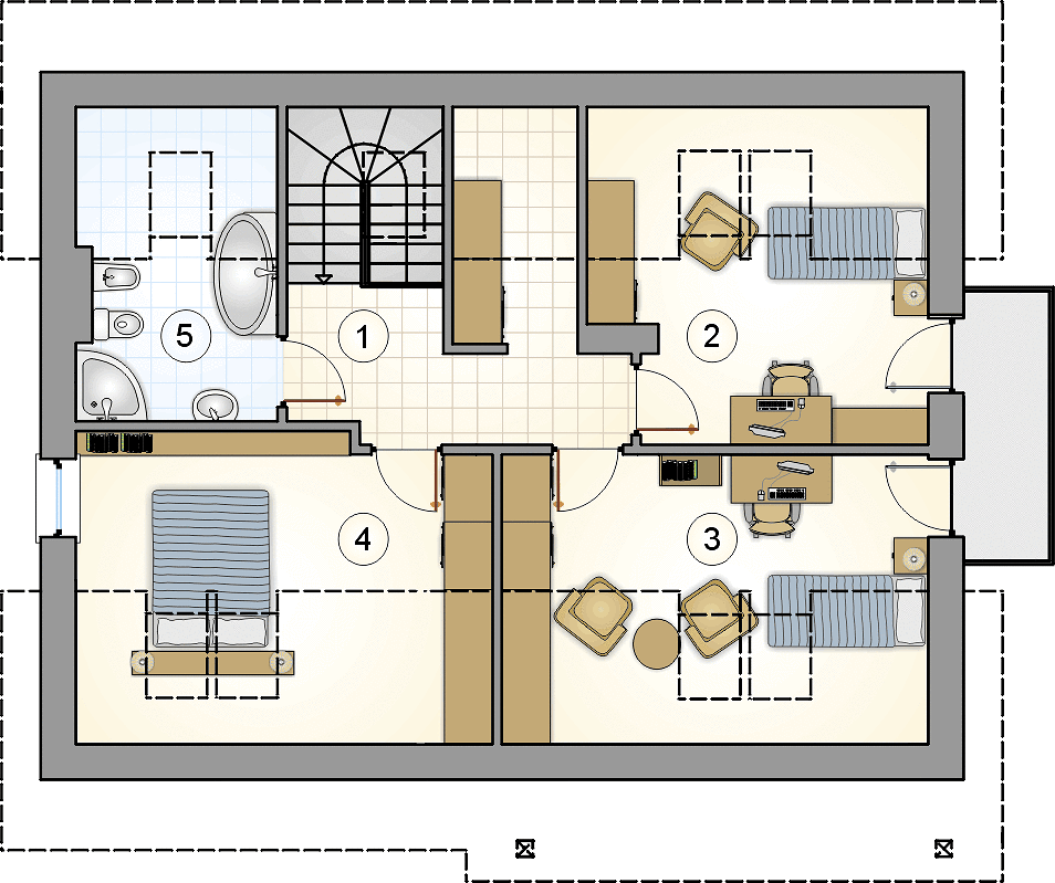 - Два полноценных этажа, экономия пространства участка