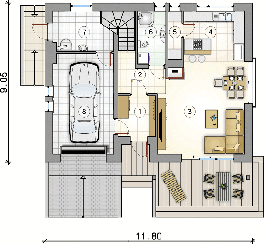 Также, несмотря на отсутствие гаража, в проект включена терраса, что позволяет проводить время на свежем воздухе с комфортом. Терраса — отличное место для семейных встреч, чаепитий на природе и расслабляющего отдыха после трудового дня.