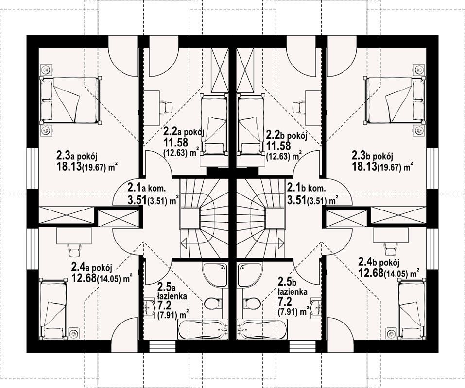 Наличие четырёх санузлов значительно расширяет возможности по организации двухэтажного дома. Обычно санузлы размещаются несколько на каждом этаже, это гарантирует комфортное проживание независимо от времени суток и количества жильцов. Каждый член семьи получает возможность пользоваться ванной или душевой без очередей.