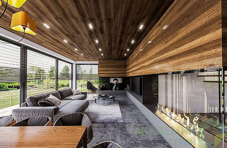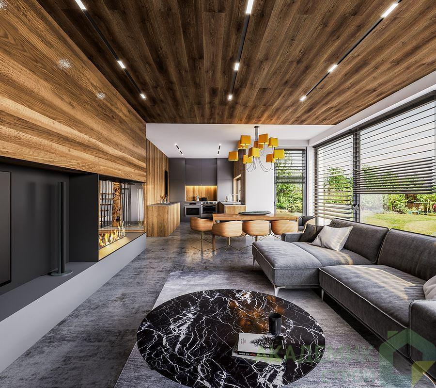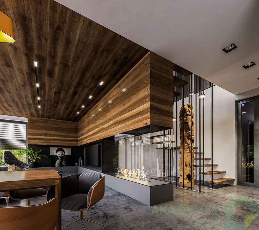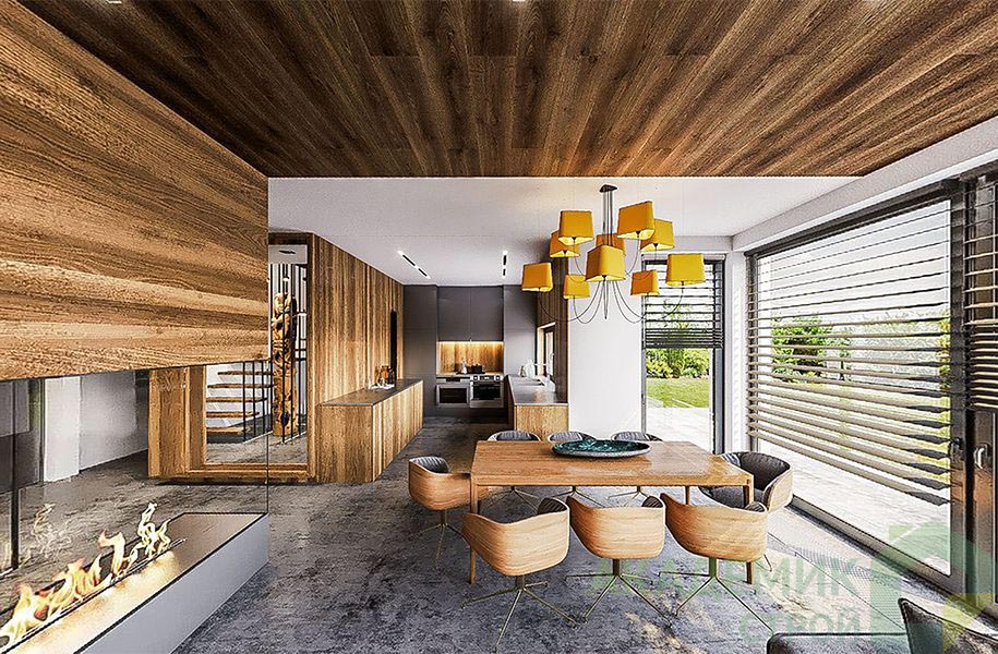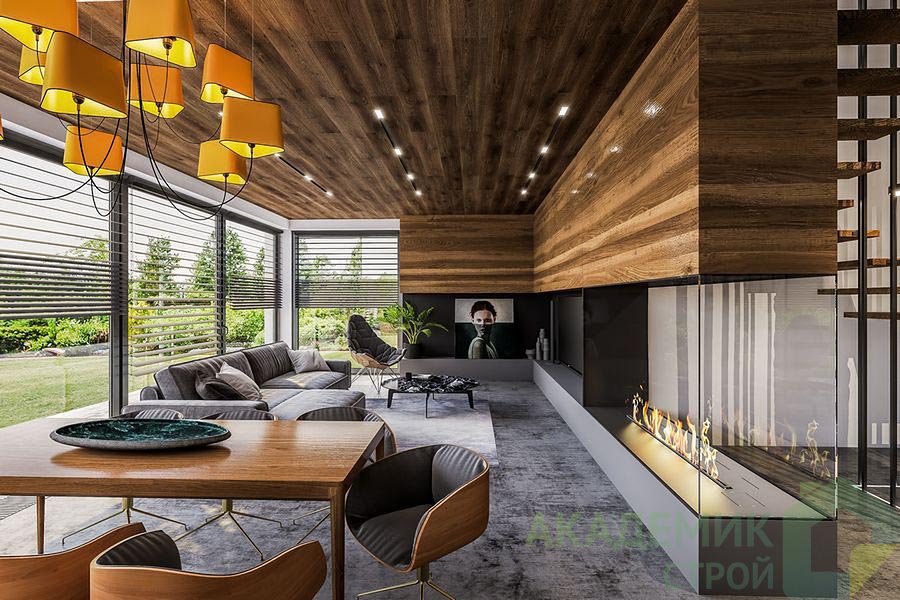 - Гостиная с камином – уютное место для семейных вечеров и приёма гостей;