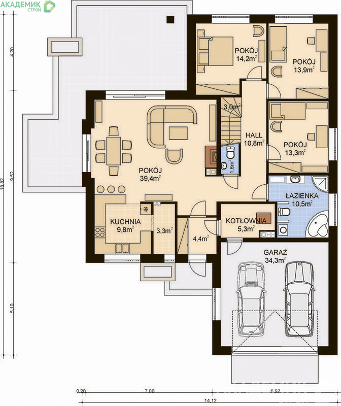 Одним из ключевых критериев выбора проекта дома является его цена. "Академик Строй" предлагает одноэтажный дом 14х19 с площадью полезной площади 163,8 м² по конкурентной и прозрачной стоимости.