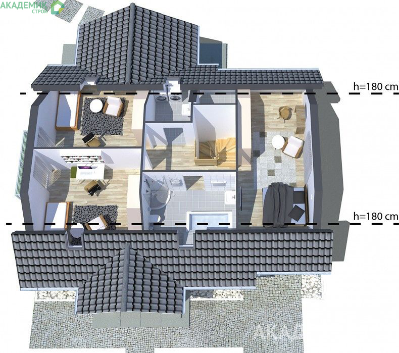 Если у вас большая семья или вы часто принимаете гостей, дом с четырьмя спальнями — это именно то, что нужно. В проекте от «Академик Строй» предусмотрено именно такое количество комнат для отдыха и личного пространства.