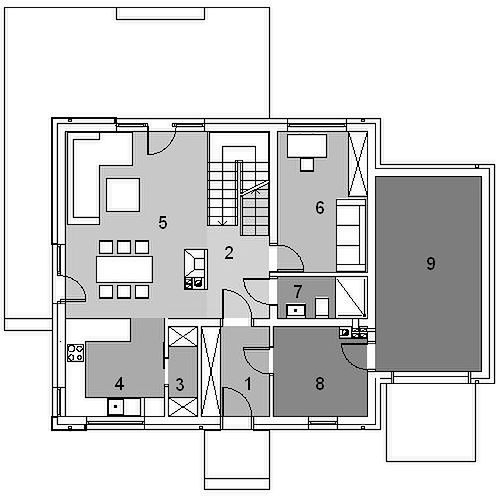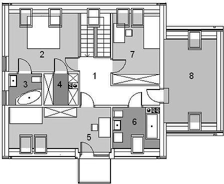 В современном доме важно иметь достаточно жилых комнат. Четыре спальни дают возможность организовать личное пространство каждому: родителям — отдельную спальню, детям — свои комнаты, а гостям — гостевую. Кроме того, часть комнат можно использовать как рабочий кабинет, мастерскую или игровую.