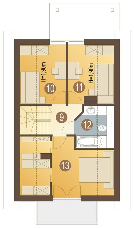 Ничего не волнует будущего владельца дома так сильно, как планировка – в конце концов, именно она определяет повседневный комфорт. В нашем доме площадью 91,8 м² расположены целых четыре спальни – это редкость для такого компактного дома и очень актуально для больших семей или тех, кто любит принимать гостей.