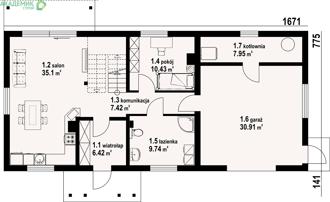 Продуманная планировка — один из важнейших аспектов, на который стоит обратить внимание. Проект дома 17х9 м от «Академик Строй» предлагает именно тот набор комнат и удобств, который нужен для полноценной жизни.