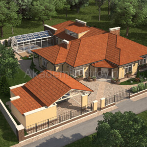 Обзор проекта: одноэтажный дом 23 x 32 м, 369 м²