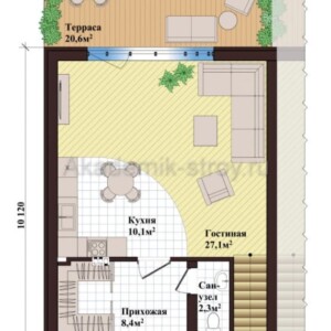 Дом имеет габариты 7 по ширине и 11 метров по длине — это классический прямоугольный корпус, который позволяет максимально удобно распланировать внутренние помещения. Общая площадь дома — 122,14 м², что весьма многофункционально при данном количестве этажей. Здесь каждая зона имеет достаточные размеры для комфортной эксплуатации.