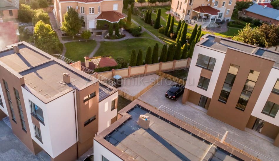 Выбор кровельных материалов зависит от климатических особенностей региона, но для трёхэтажных домов обязательным условием является высокая водонепроницаемость и хорошая прочность.