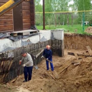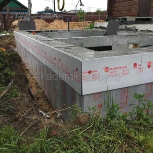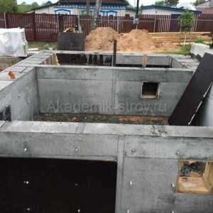 - Заливка фундамента с обязательной гидроизоляцией.