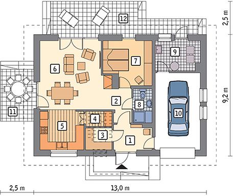 | Размеры дома | 13 х 9 м | Оптимальный габарит для небольшого участка |