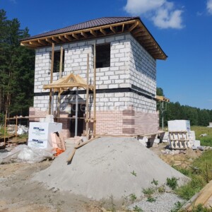 Дома такого типа часто строят с использованием легких, но прочных материалов — например, деревянных каркасов с утеплением, газобетона или легких кирпичных блоков. Это позволяет получить устойчивое и энергоэффективное здание, способное обеспечивать комфортный микроклимат во всех комнатах.