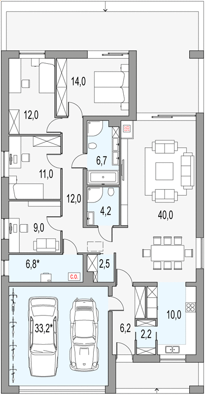 Терраса в проекте служит не только функциональным продолжением внутреннего жилого пространства, но и выступает символом здорового образа жизни. Здесь можно расположить мебель для отдыха, гриль или обустроить зону барбекю. Такой элемент повышает общую привлекательность дома и создает дополнительные возможности для проведения досуга.