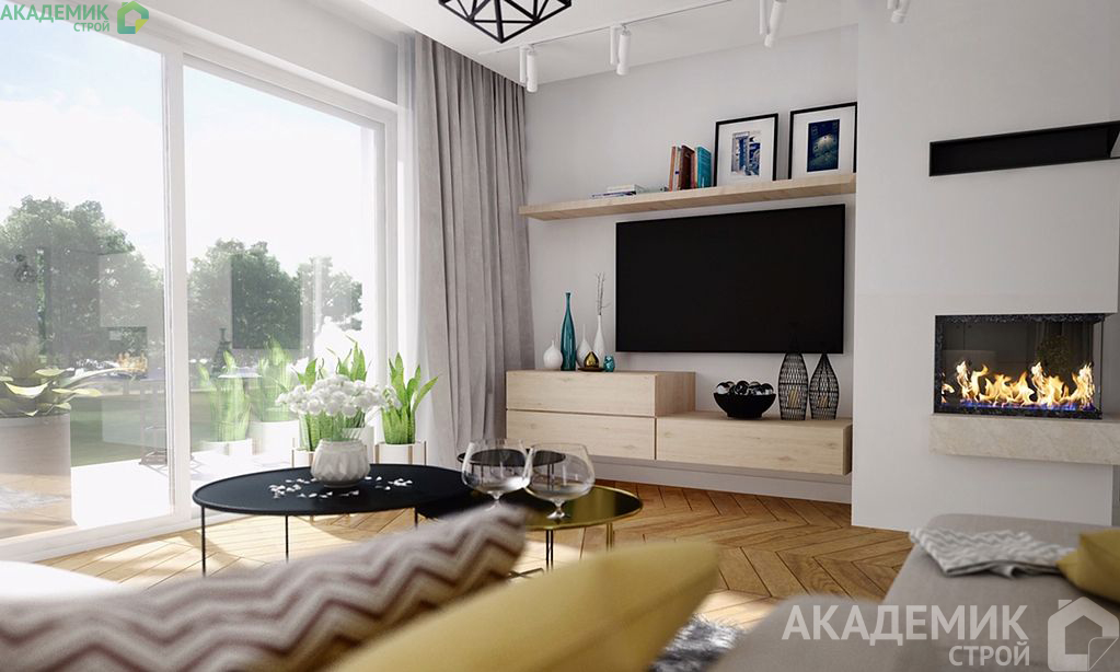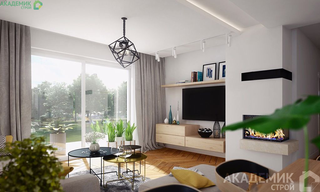 Одно из главных преимуществ проекта от "Академик Строй" — возможность добавить дополнительные опции, делающие проживание теплее и уютнее. Камин, встроенный в гостиную, является не только источником тепла в холодное время года, но и центром притяжения для всей семьи. Представьте себе уютные зимние вечера у огня — это не просто красиво, это создает особую атмосферу уюта и домашнего тепла.