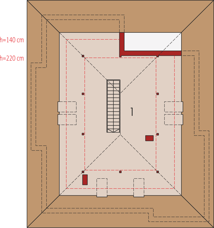 Уют и надежность дома напрямую зависят от качественного покрытия крыши, и здесь проект не подводит. Тип крыши — двускатная с вальмовыми элементами сложной формы — обеспечивает не только привлекательный внешний вид, но и высокую функциональность.