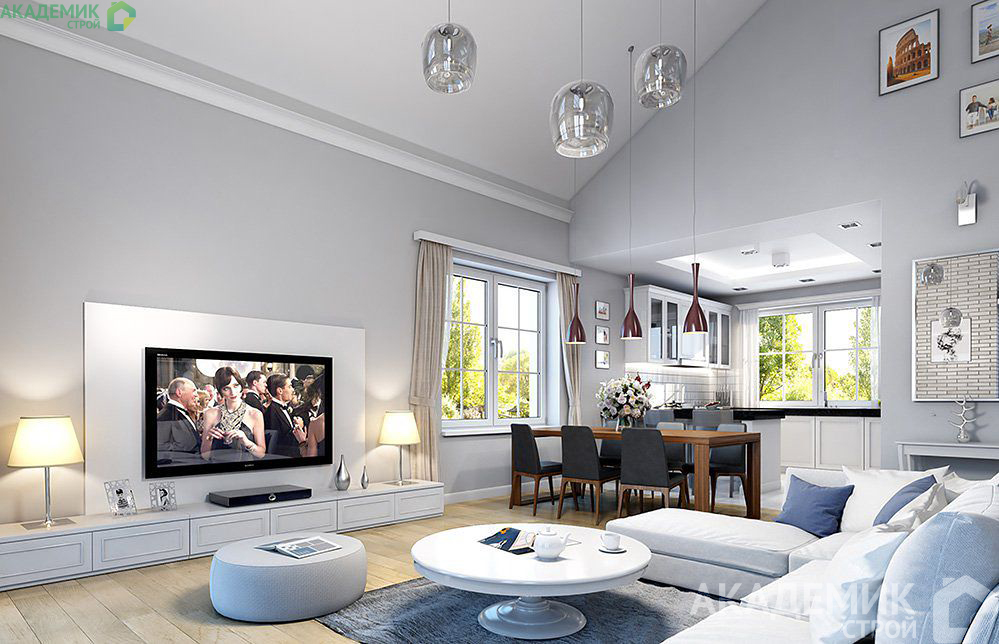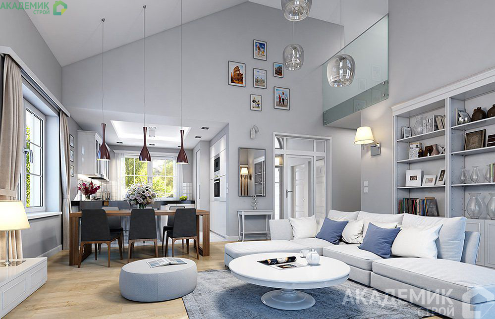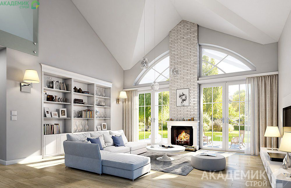 Особое внимание стоит обратить на использование натурального света. Большие окна и возможность оборудовать мансардные окна под крышей с углом наклона 30° создают атмосферу уюта и положительно влияют на психологическое состояние жильцов.