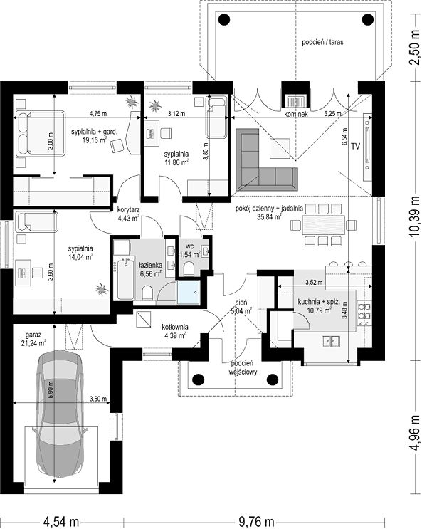 При выборе проекта дома важно обратить внимание не только на размеры, но и на соотношение между общей, жилой и полезной площадью. В нашем случае, жилая площадь — это зоны, предназначенные для отдыха и сна, а полезная площадь включает также хозяйственные и технические помещения, коридоры, лестницы, что создает целостный и сбалансированный внутренний объем дома.
