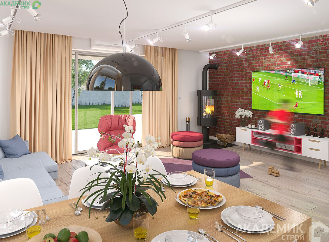 Опции проекта: камин, комната на первом этаже и терраса