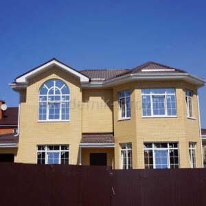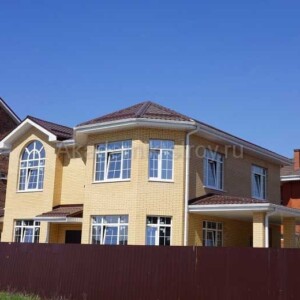 Очень популярным решением являются комбинированные фасады с использованием штукатурки и декоративного облицовочного камня, что придает дому современный и презентабельный вид. Освещение участка, дорожки и зеленые зоны дополнят общий облик и создадут атмосферу уюта и безопасности.
