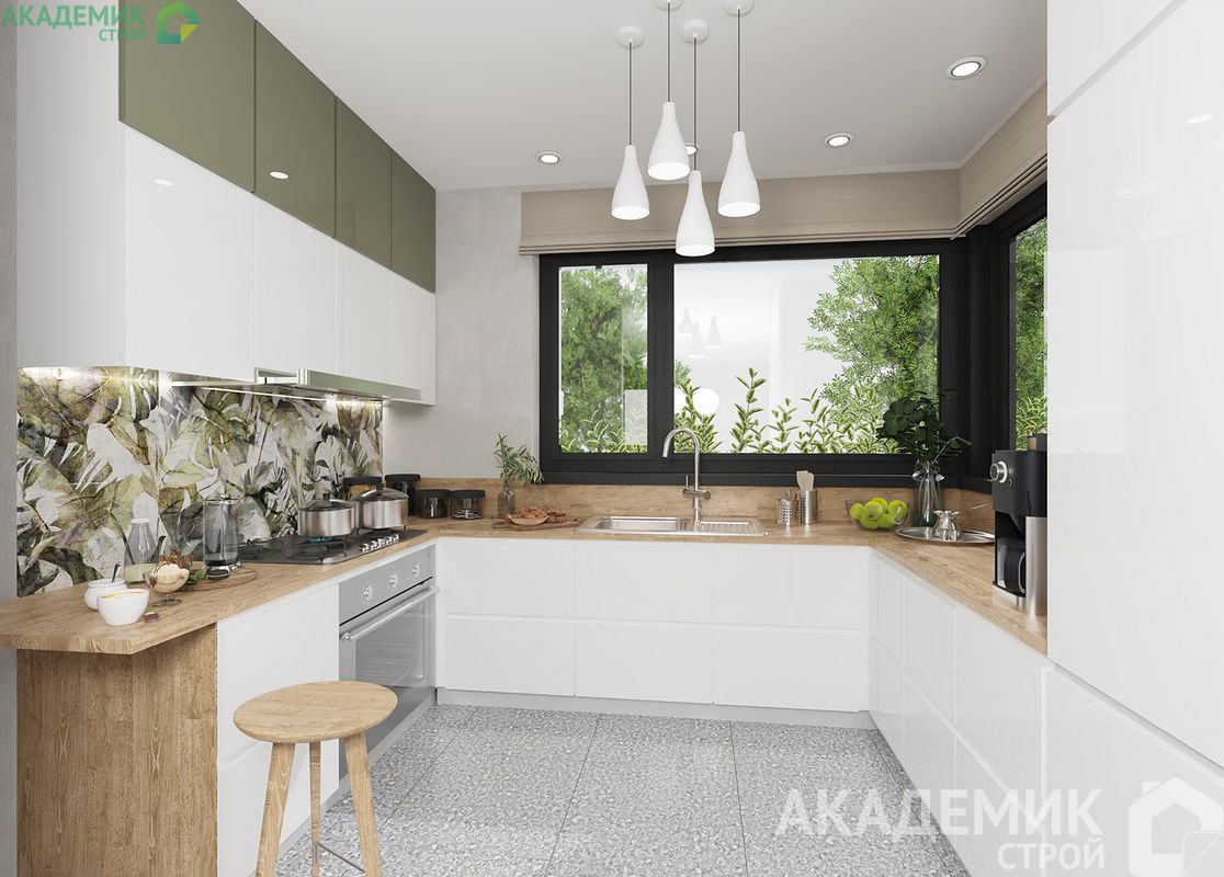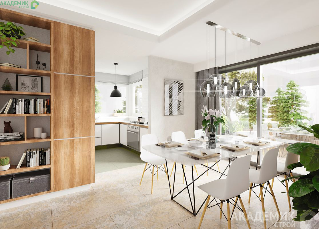 Высота здания составляет 8,32 метра, благодаря чему дом получился двухэтажным, но при этом достаточно стройным и элегантным. Комбинация классических архитектурных решений и современных технологий строительства создает комфортное и безопасное жилое пространство. Отдельной привлекательностью можно считать наличие камина – элемента, который не только украшает интерьер, но и создает уют в холодное время года.
