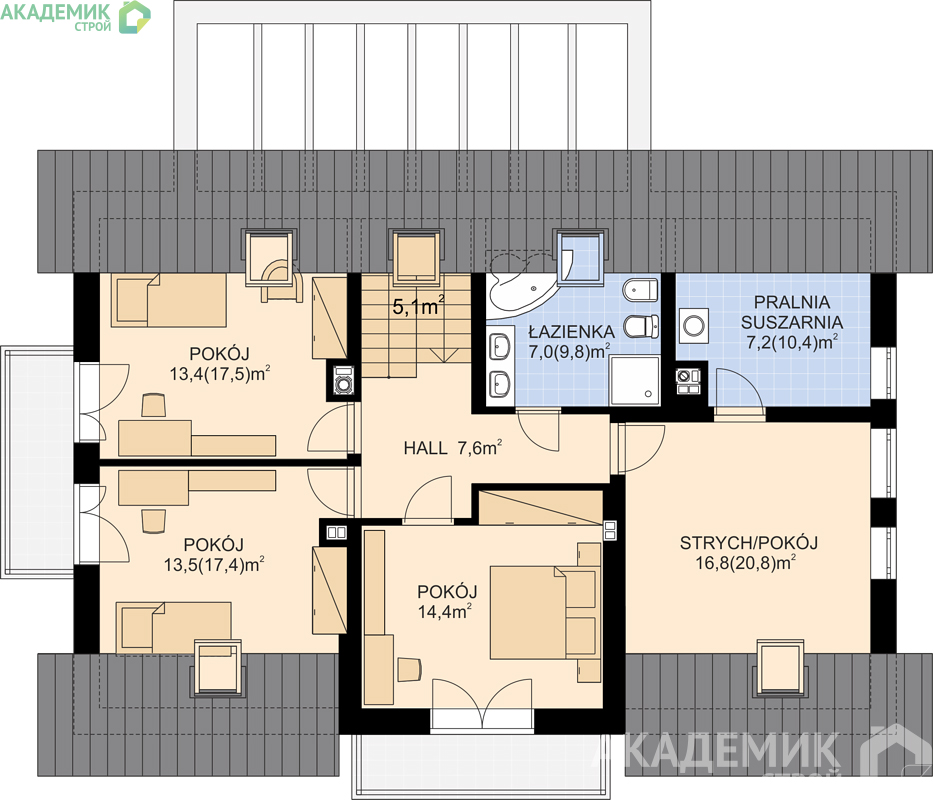 | Площадь крыши | 215,5 м² | Двускатная крыша с углом 40° |