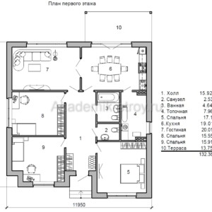 | Коридор, кладовые, холлы | 20 | Связующие и вспомогательные помещения |