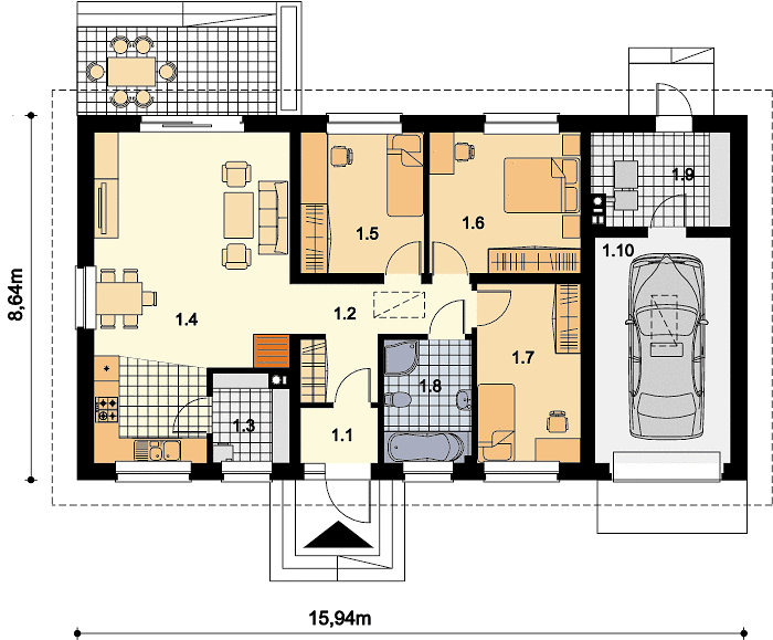Плюс к этому – площадь застройки в 137,72 м² и площадь крыши почти 200 м² дают возможность использовать открытые пространства, например, качественную террасу. Компания "Академик Строй" предусмотрела опцию террасы, которая станет любимым местом для семейных вечеров и дружеских встреч на свежем воздухе.