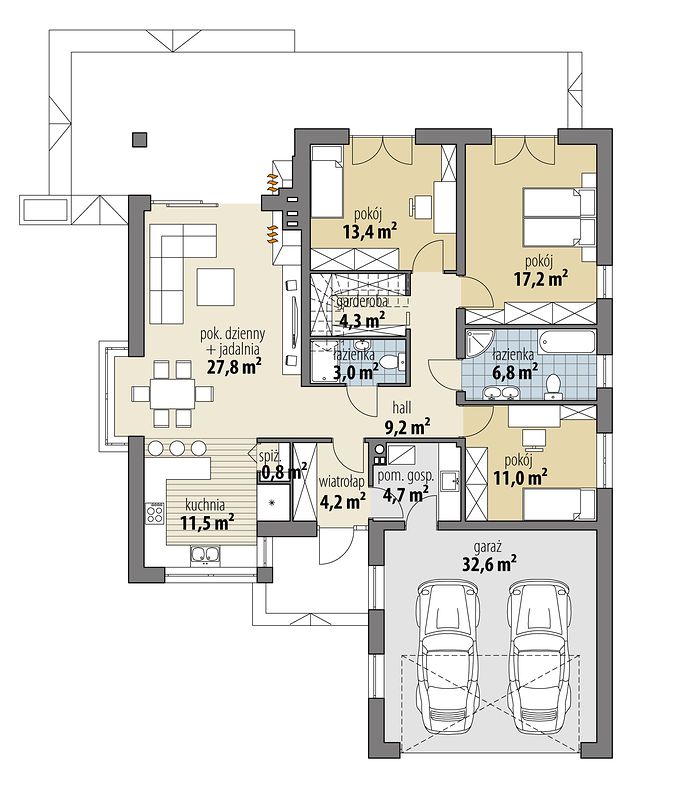 Комфорт доступного пространства без лестниц особенно важен для пожилых домовладельцев или тех, кто ценит простоту и безопасность. Планировка продумана так, чтобы все основные зоны были доступными и удобными.