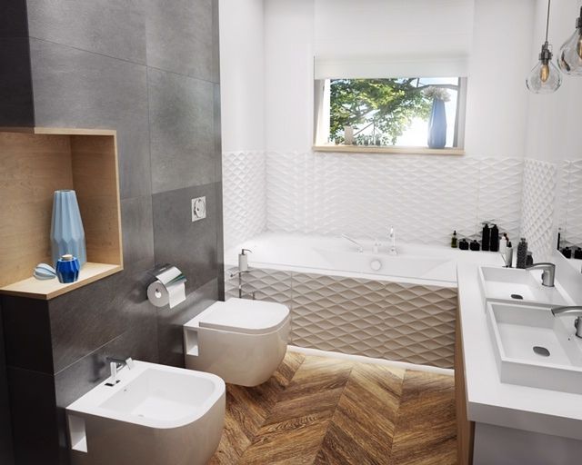- Второй — на втором этаже, рядом со спальнями, что удобно для утреннего и вечернего пользования.