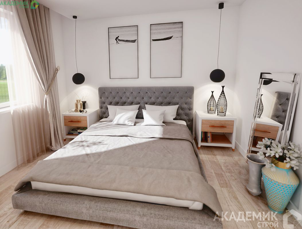 - Главная спальня с достаточно большим пространством для хозяйской кровати и гардеробной;