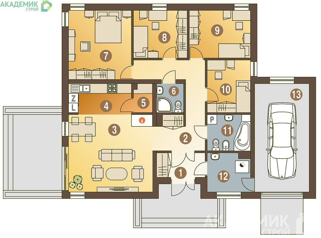 Перейдём к самому интересному — какой внутри ваш новый дом? В проекте от «Академик Строй» все помещения продуманы так, чтобы вы чувствовали себя уютно и свободно.