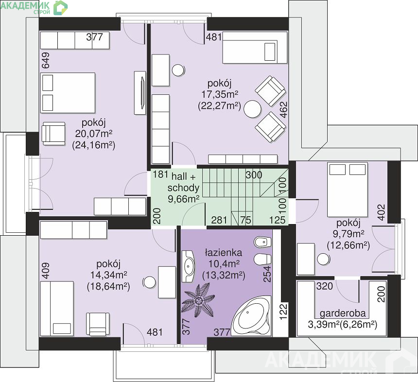 Площадь жилой зоны — 164,43 м², что говорит о высоком проценте жилых комнат в общем пространстве. Это особенно важно для семей с детьми, где каждому нужно личное пространство для отдыха и учебы.