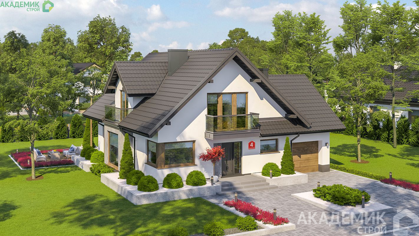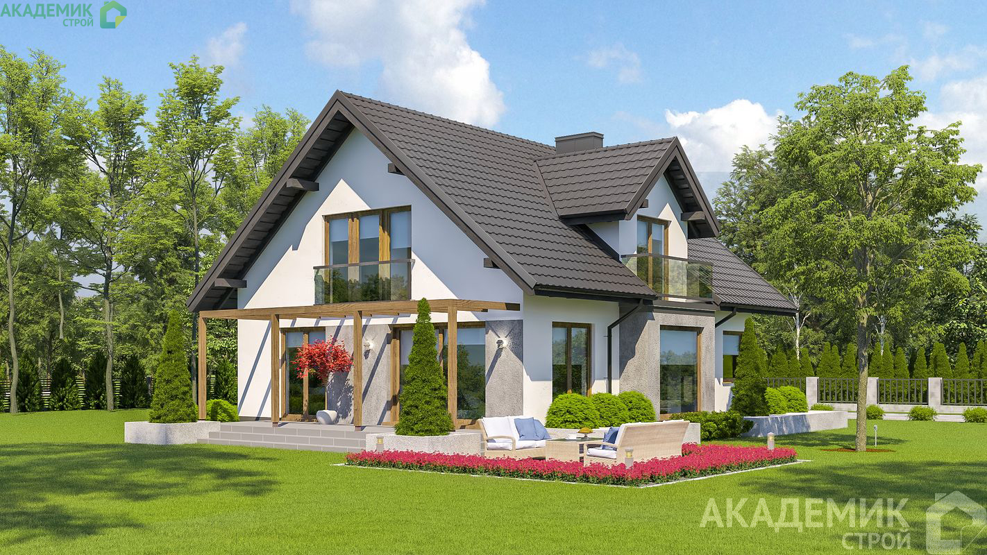 Внешний облик дома с двускатной кровлей и оформлением эркера придает зданию классический и одновременно современный стиль, который нравится широкому кругу собственников. Эркер позволяет наполнить внутренние помещения дополнительным светом и зрительно увеличить пространство.