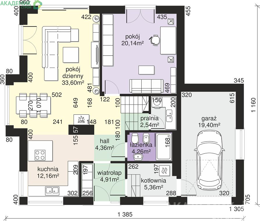 Высота здания составляет 8,35 м, что позволяет гармонично вписать дом как в городской пригород, так и в загородную зону, обеспечивая хороший визуальный баланс между домом и участком.