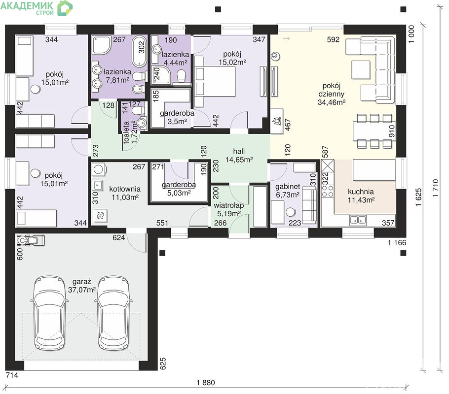 Этот перечень параметров дает нам уже общее представление о том, насколько дом продуман до мельчайших деталей. Именно внимание к таким вещам позволяет «Академик Строй» создавать проекты, подходящие под разные запросы и предпочтения семьи.