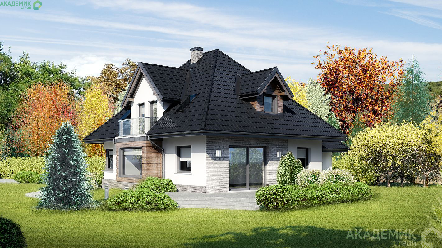 Двухэтажный дом площадью 186,33 м² со сложной формой крыши — это не просто стандартное жилье. Архитектурное решение от "Академик Строй" удивительно гармонично сочетает классические и современные стилистические черты.