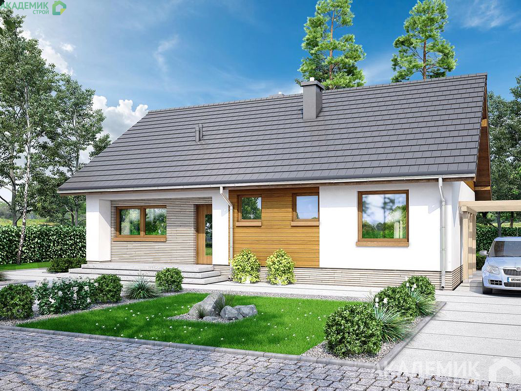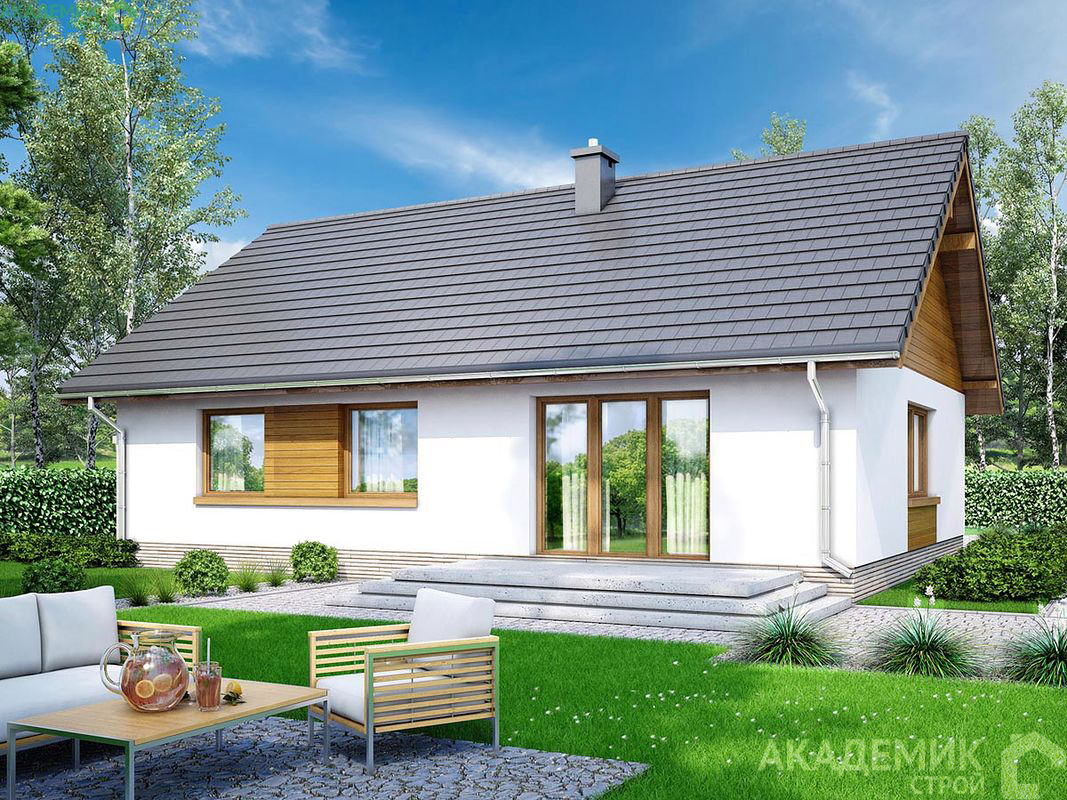 Одноэтажный дом легче визуально облагородить, если дизайн фасада продуман до мелочей. В проекте "Академик Строй" учтены современные тенденции архитектуры, что поможет создать привлекательный облик дома и повысить его стоимость при перепродаже.