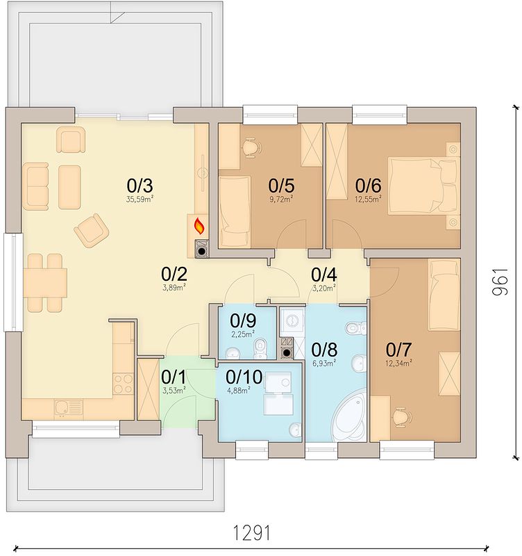 Хотя 94,88 м² – достаточно большая площадь для одного этажа, важно правильно распределить комнаты между собой. Убедитесь, что кухня, гостиная и спальни располагаются так, чтобы обеспечить естественное освещение и удобный доступ друг к другу.