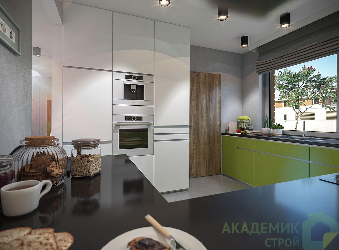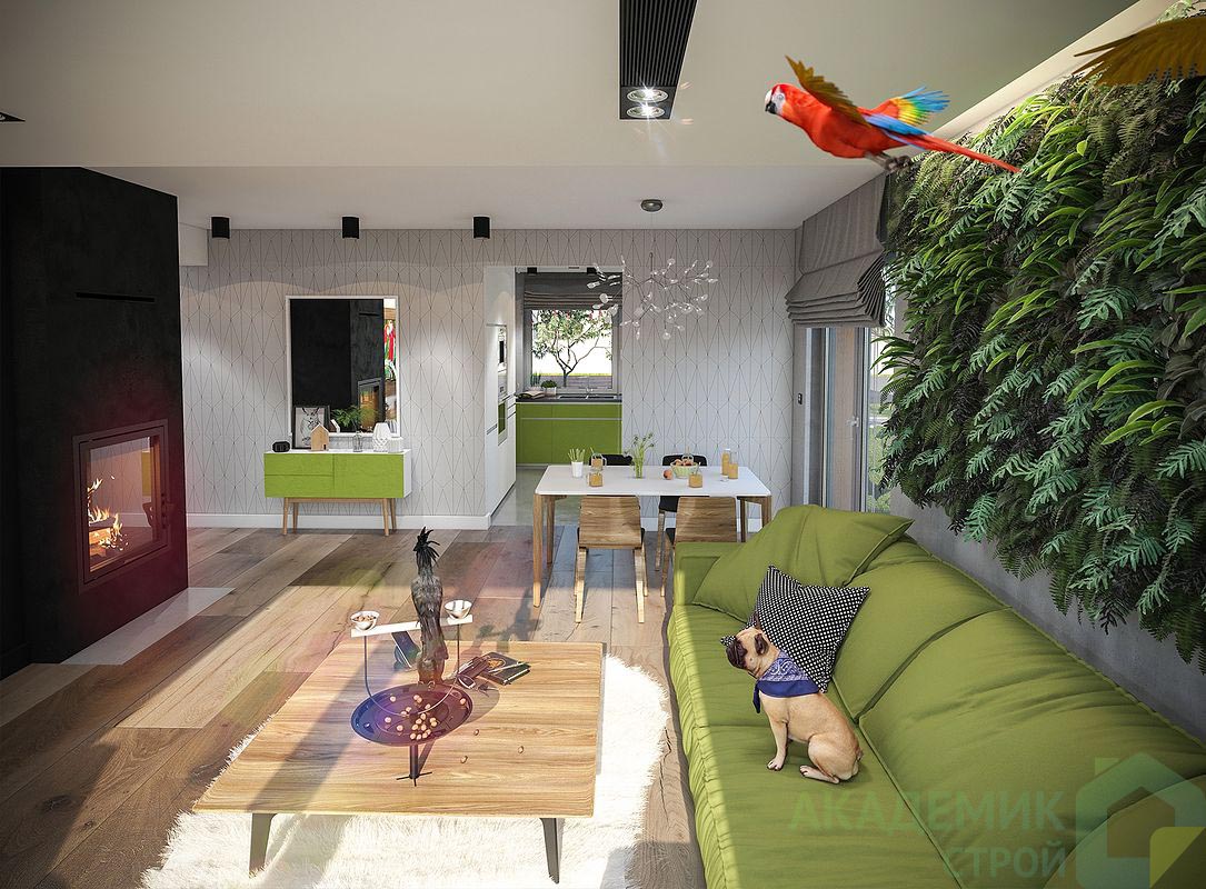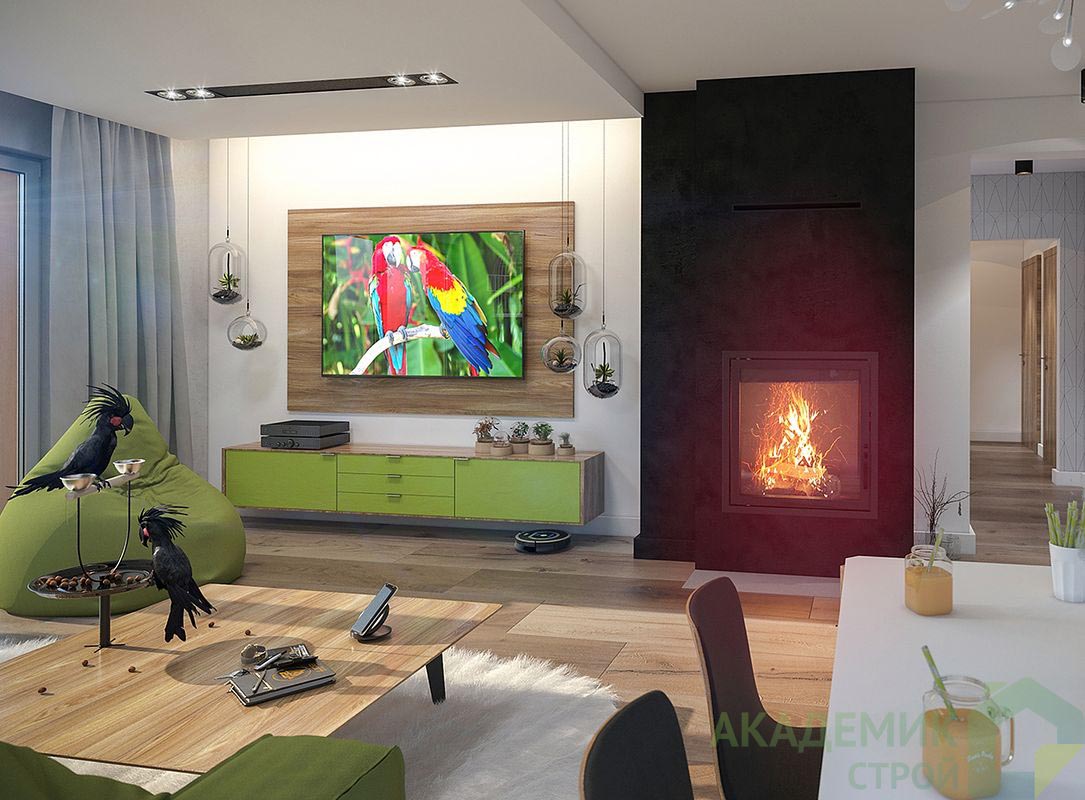 Одной из изюминок представленного проекта является возможность установки камина. Этот элемент не только украшает интерьер, но и создаёт особую атмосферу уюта и тепла, что особенно ценно в холодные зимние вечера. Камин может служить не только декоративной функцией, но и дополнительным источником обогрева, снижая общие затраты на отопление.