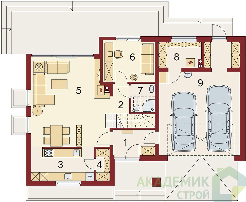 Планируя первый этаж, проект «Академик Строй» акцентировали внимание на удобствах и создании пространства, насыщенного светом и теплом.