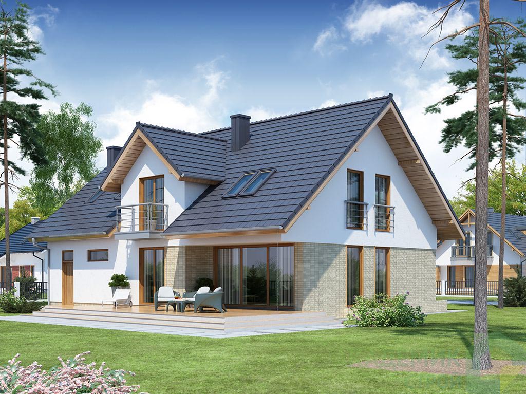 Двускатная крыша создает характерный классический вид дома и обеспечивает надежную защиту от осадков. К тому же, такой тип крыши намного проще ремонтировать и обслуживать в сравнении со сложными технологиями.