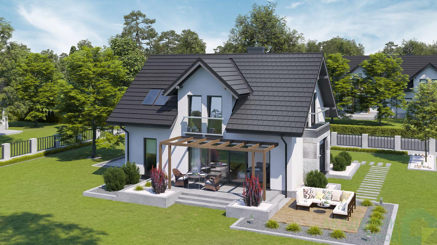 Площадь крыши здесь — 177,53 м². Это относительно большой показатель, который можно эффективно использовать для установки солнечных панелей, создания утеплённого чердачного помещения или даже небольшого зимнего сада в эркере.
