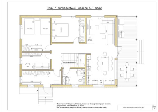 В архитектурном проекте указываются все, необходимые для строительства, линейные размеры с учетом примерной расстановки мебели и оборудования, даются детальные решения элементов загородного дома - стен, перегородок, полов, кровли, с основными видами, разрезами, сечениями и узлами.
