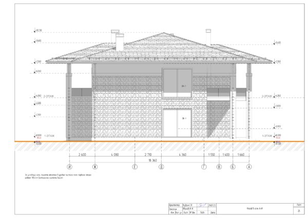 - Разрезы дома с высотными отметками