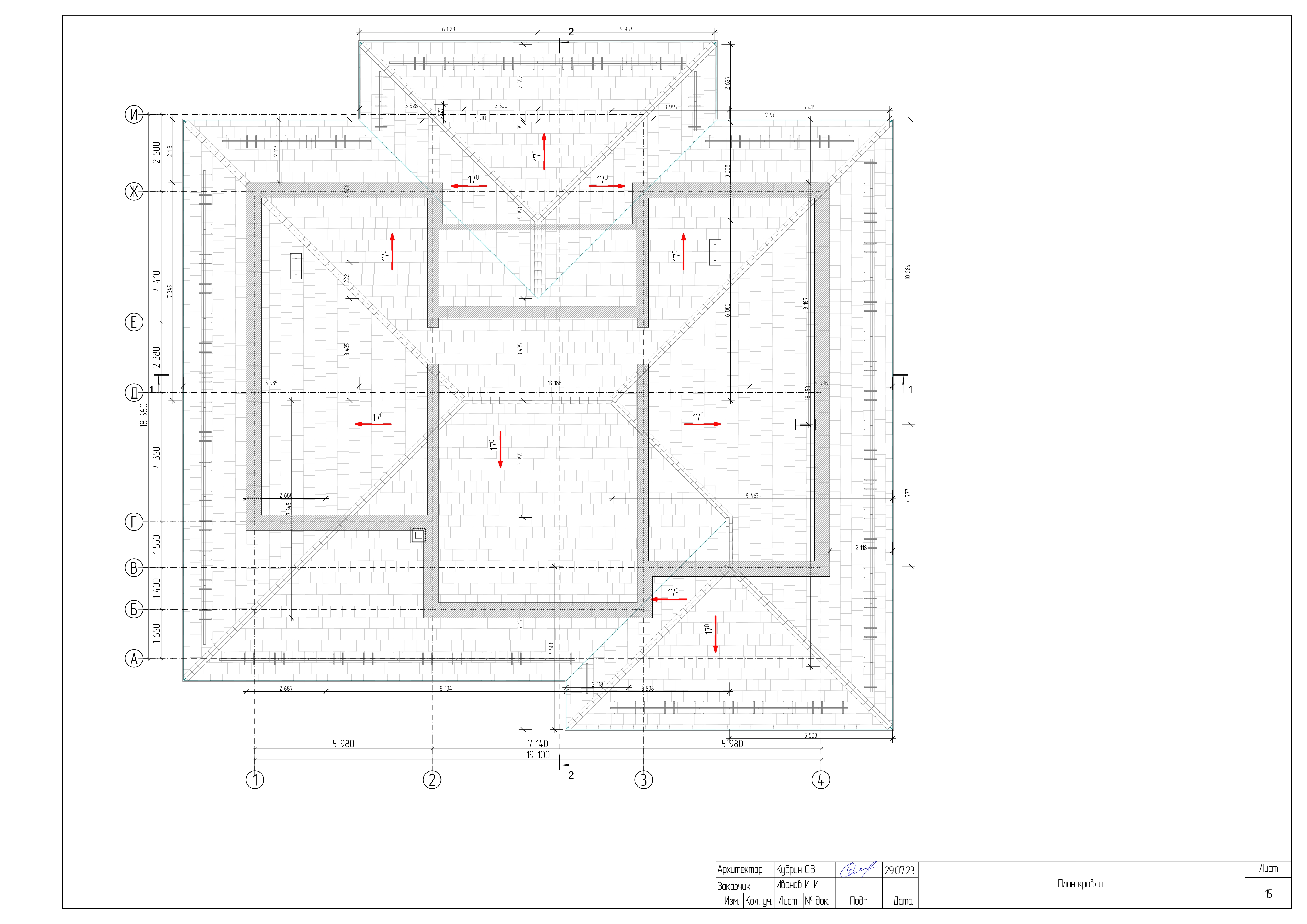 - План кровли с водоотводом